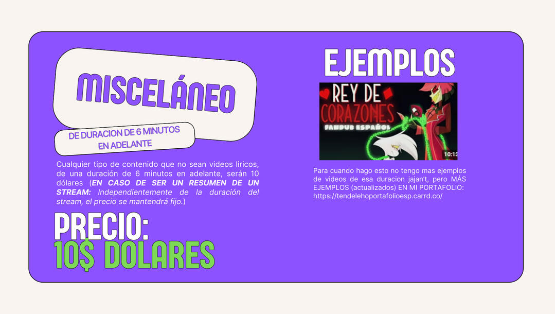 MISCELÁNEO De 6 minutos en adelante